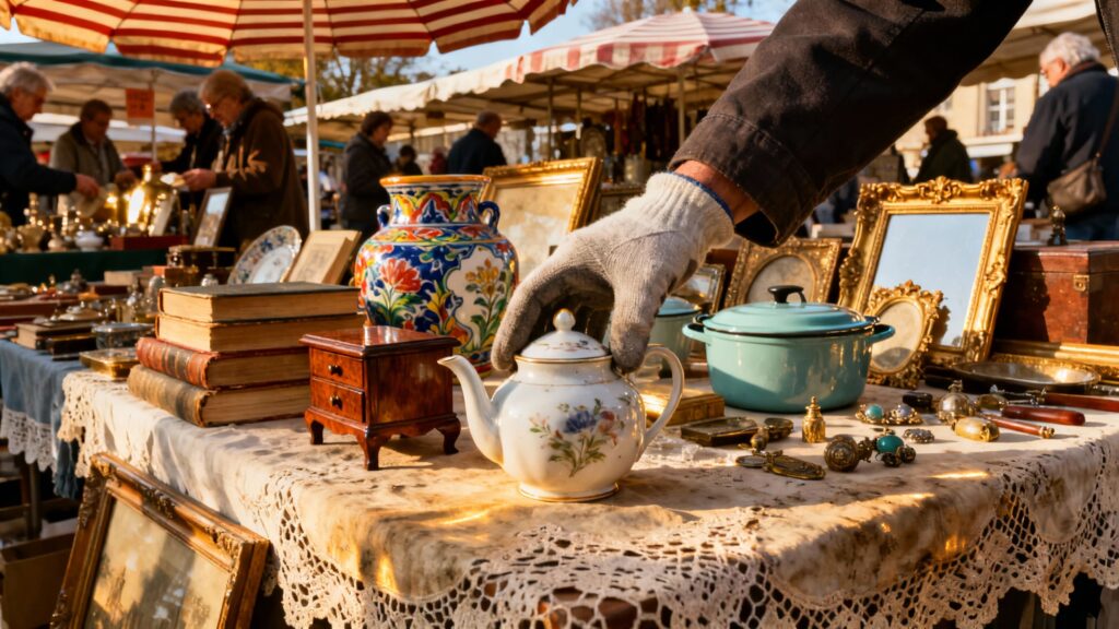 Les vide-greniers de campagne constituent également des terrains de chasse privilégiés pour le bricadabrac. Dans ces événements conviviaux organisés par les associations locales, on trouve des objets de la vie quotidienne chargés d’histoire : vaisselle en faïence ancienne, textiles brodés, outils d’antan ou jouets vintage. L’atmosphère y est chaleureuse et les vendeurs, souvent des particuliers, partagent volontiers l’histoire des objets qu’ils proposent.