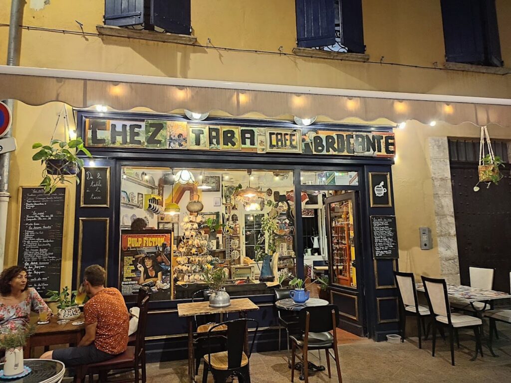 Les jeudis, vendredis et samedis soirs, Chez Tara café-brocante prend des airs de bar vintage branché. L’ambiance est plus festive, la terrasse s’anime, et c’est l’occasion de découvrir le lieu sous un autre jour, entre apéro et découvertes.
