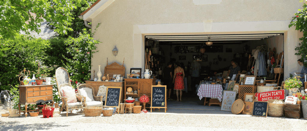 Un vide garage, comme son nom l’indique, consiste à vendre les objets stockés dans un garage, directement depuis chez soi, souvent dans l’allée ou le jardin de la maison. Il s’agit d’un vide maison à petite échelle, sans besoin de se déplacer dans une brocante ou un vide-greniers organisé par une commune.