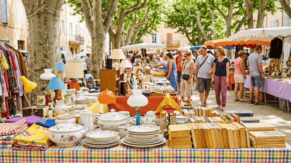 Nîmes, capitale gardoise, organise sa fameuse brocante des allées Jean Jaurès mi-mai, ravissant les promeneurs printaniers et les amateurs d’antiquités. Le vide-greniers Broc’Hand de Marguerittes début mai s’est également imposé comme un rendez-vous immanquable, tandis que la foire aux antiquités d’Uzès autour du 14 juillet séduit les estivants en quête de pièces authentiques.