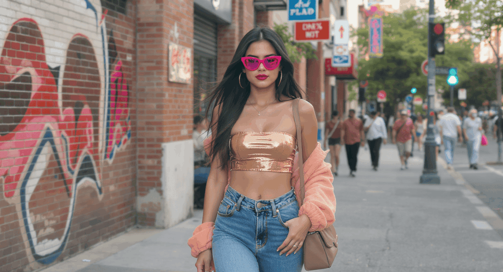 Le style Y2K, né à la charnière du millénaire, fusionne futurisme naïf, maximalisme pop, et techno-glam. En 2025, il revient en force, porté par TikTok, les influenceuses mode et une génération avide de singularité. Les pièces vintage Y2K ne sont plus des reliques : elles sont devenues des objets de désir.