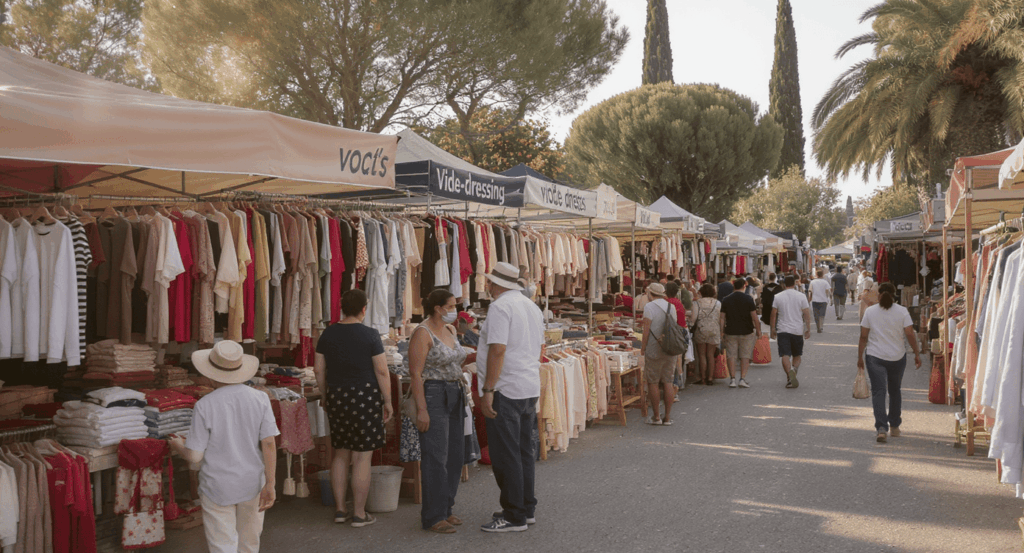 Format traditionnel où particuliers et brocanteurs vendent objets divers, meubles, vaisselle ET vêtements. Dans les Pyrénées-Orientales, ces événements rassemblent parfois plus de 200 exposants. Calendrier chargé d’avril à octobre, avec des vide-greniers hebdomadaires sur la côte en haute saison.